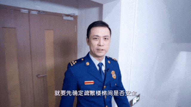 ✅ 正确做法:走疏散楼梯逃生,撤离时记得随手关闭防火门。
